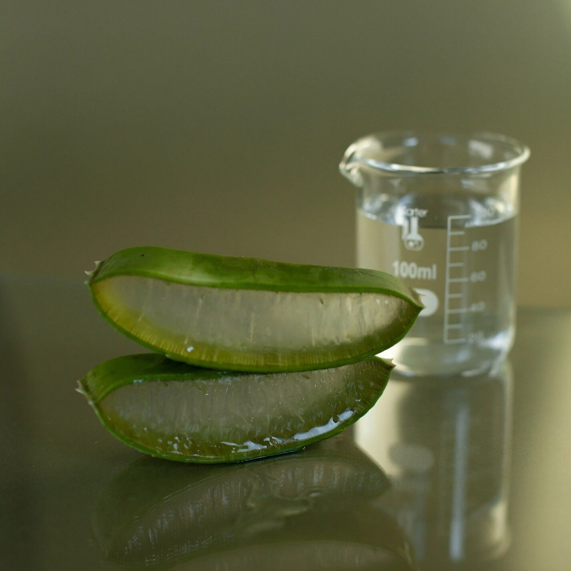 Our favorite cooling and calming ingredient: aloe vera. Our aloe vera is fractionally distilled to avoid the use of preservatives, but still contains vitamin B9 (folic acid) and minerals like magnesium, potassium, sodium and zinc. Perfect for relieving sunburns or dry, itchy, and irritated skin.
